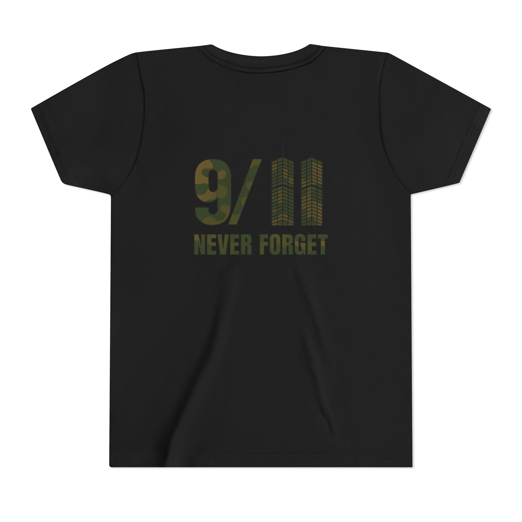 Introducing our Youth Short Sleeve Tee, a perfect blend of comfort and style designed for the young ones in your life. Made from extra lightweight, airlume-combed cotton, this tee is soft to touch and ideal for everyday wear. Its modern crew neckline and retail fit provide a comfortable feel for various activities, whether at school or outdoors. This tee embodies a sense of remembrance and respect, making it perfect for commemorative events like 9/11 memorial services, patriotic celebrations, or simply as a daily reminder of resilience and unity. It's a meaningful addition to any young person's wardrobe, especially suited for thoughtful families looking to honor significant historical moments.